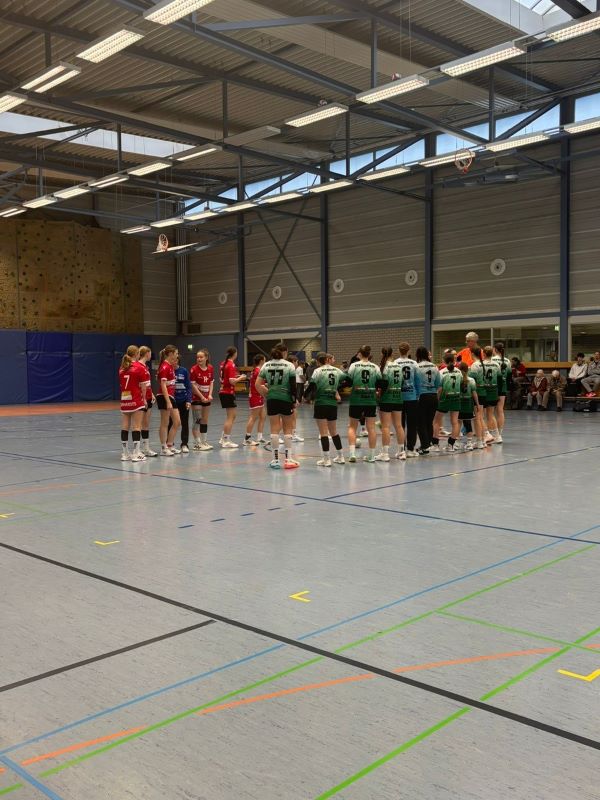 Machen wir es kurz….1 Minute und 30 Sekunden vor Schluss führen wir mit einem Tor gegen St. Tönis. Ein Schrittfehler und eine unglückliche Abwehraktion unseres Teams reichten dann aber am Ende für einen 12:11 Sieg für Tönis. Auch wenn unsere Mädels etwas geknickt waren, haben sie ein super Spiel auf die Platte gebracht.